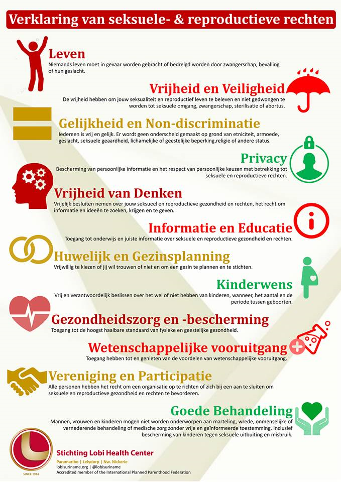 Seksuele en reproductieve gezondheid en rechten, maken deel uit van de basisrechten van de mens. Ze zijn essentieel voor het ten volle benutten van de mogelijkheden, die ieder mens heeft van geestelijk, emotioneel en lichamelijk welzijn. Ze zijn een instrument voor verrijking van de relatie met medemensen, ze versterken de positie van vrouwen en daarmee de hele samenleving en ze zijn noodzakelijk voor het bereiken van gelijkwaardigheid tussen de seksen.